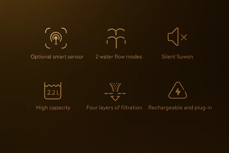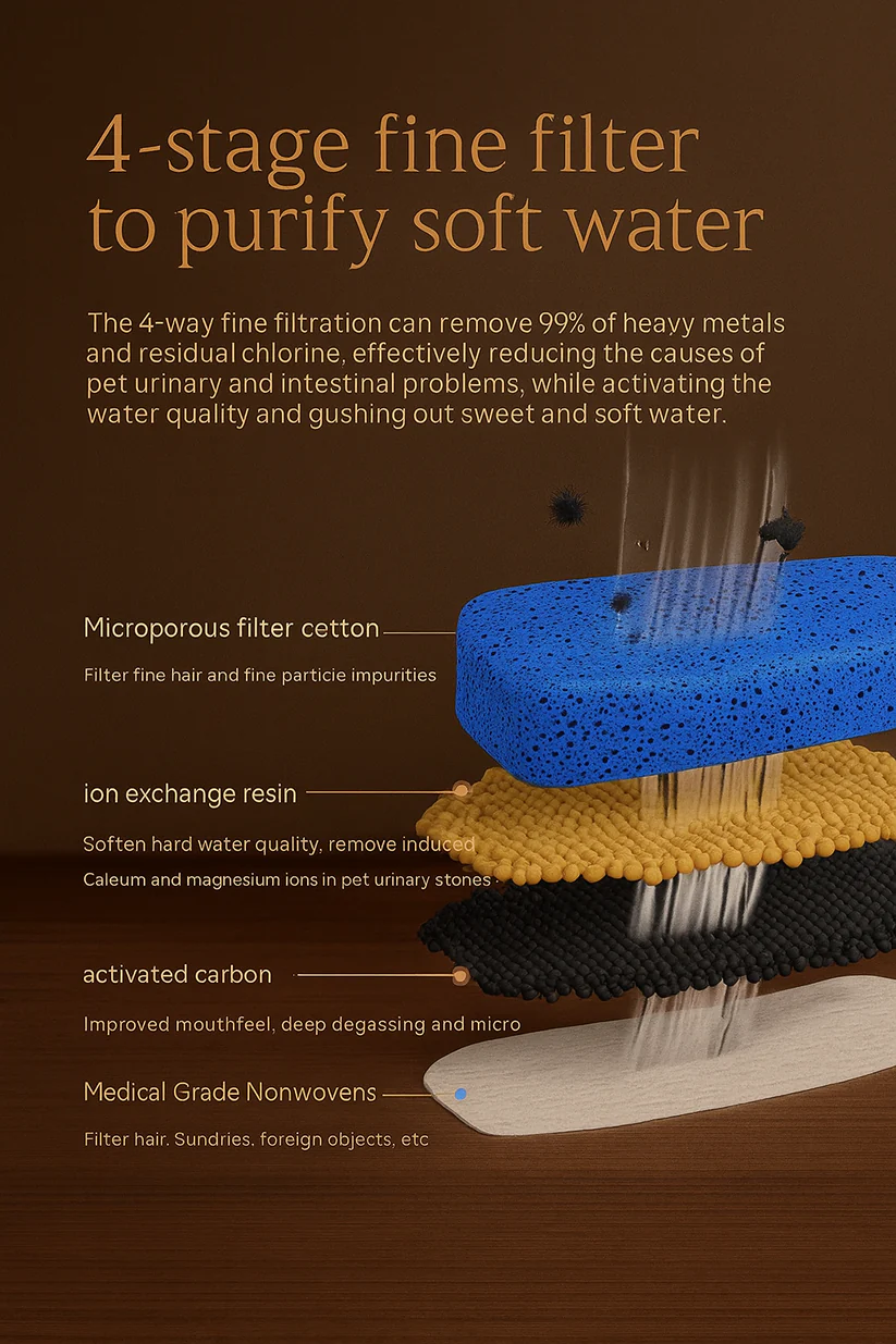 2 water supply modes — switch between a gentle jet and a bubbling fountain, depending on your pet's preferences.